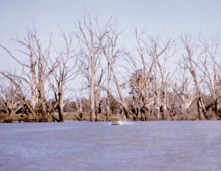 The Darling River continued to rise. Lake Weatherall, formed by the main Menindee Weir, was full of scrub and dead trees. It varied from shallow to dry, so it was necessary to follow the old river course. We were up early and got away to an early start.