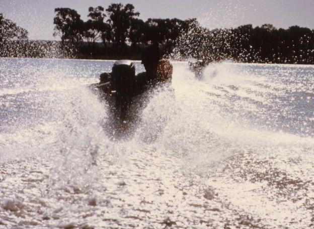 The first river traffic since the Expedition started was encountered late in the afternoon, near Wentworth. Excitement grew as the boat crews approached one of the first goals of the Expedition – the confluence of the Darling and Murray Rivers.