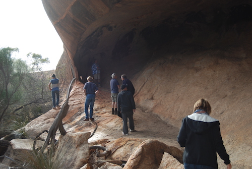 At the end of this is Kings Cave, which in reality is a large tafone. Many granite outcrops (inselbergs or monadnocks) have tafoni.  Uluru and Kata Tjutu are well known examples.