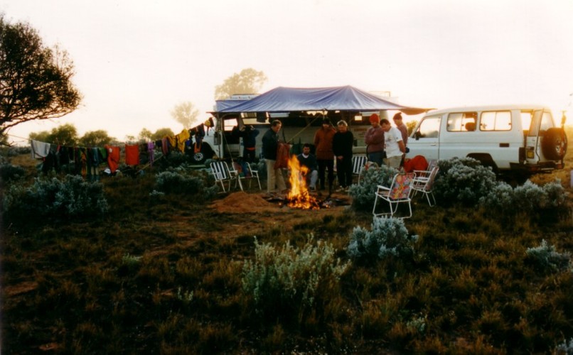 While Phil and Kim were cooking bacon, eggs and toast (muesli available for those who wanted it), Greg and Cliff checked tyres, oil, hitches and the generator. Mike and Scott checked the load on the roof rack. John and Adrian helped the cooks. David was busy taking head and shoulder photographs of most of the crew. Our guests from the fourth estate were impressed.