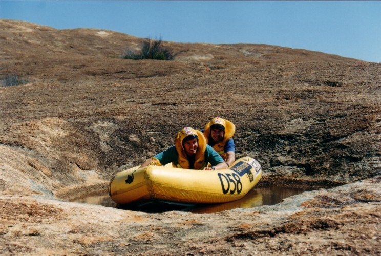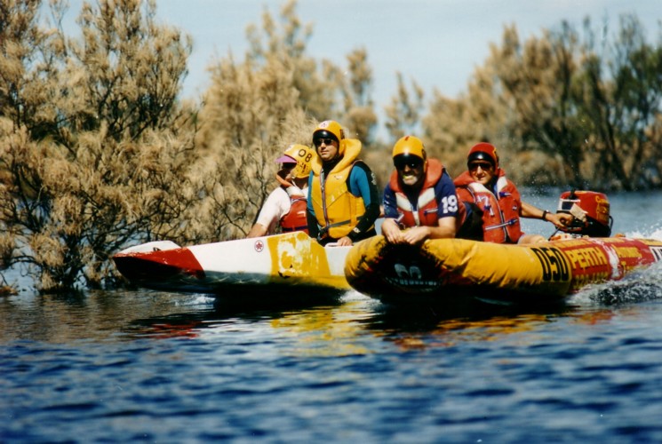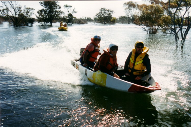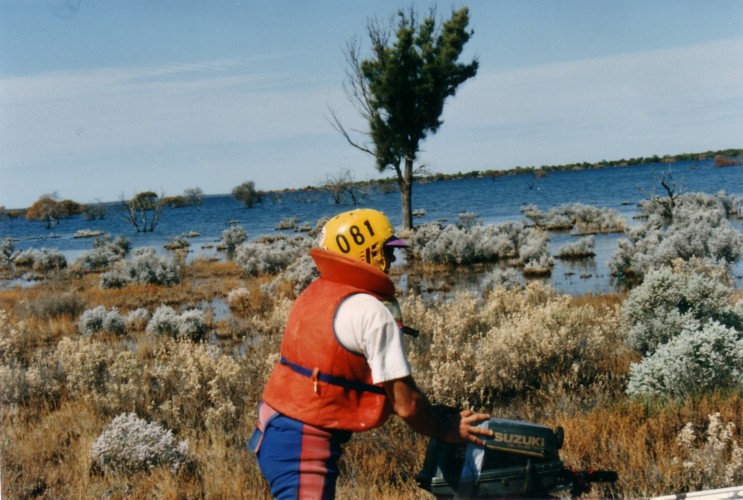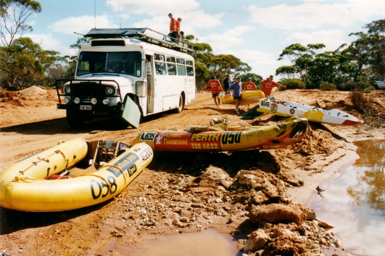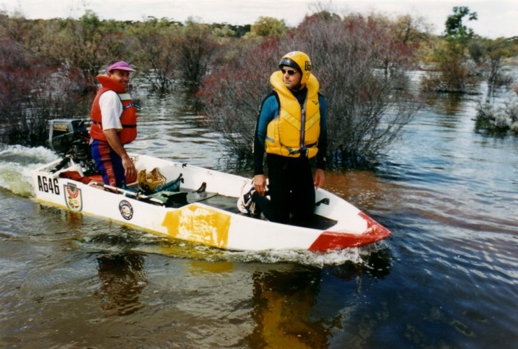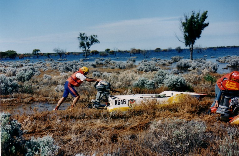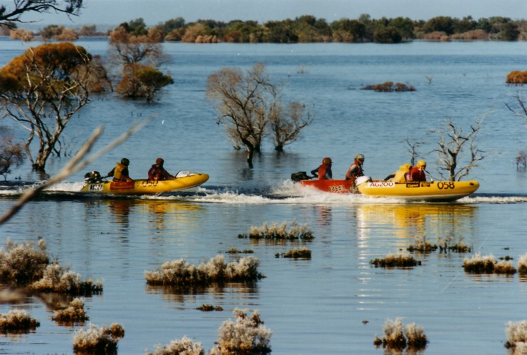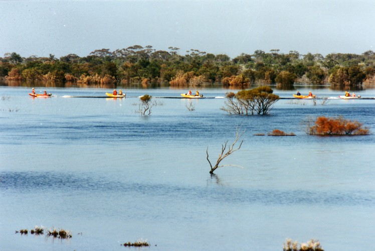 Cyclone Bobby affected a huge slice of the south-west of Australia. Dry lakes filled for the first time in many years, wildflowers were given as good a start as they could possibly have, the country was carpeted in green, the thirst of the pastoral regions and the outback was slaked – and lasted for some years. The rain from Cyclone Bobby and subsequent stream flow was a unique opportunity to create some boating ‘firsts’. Some history-making boating in the desert.