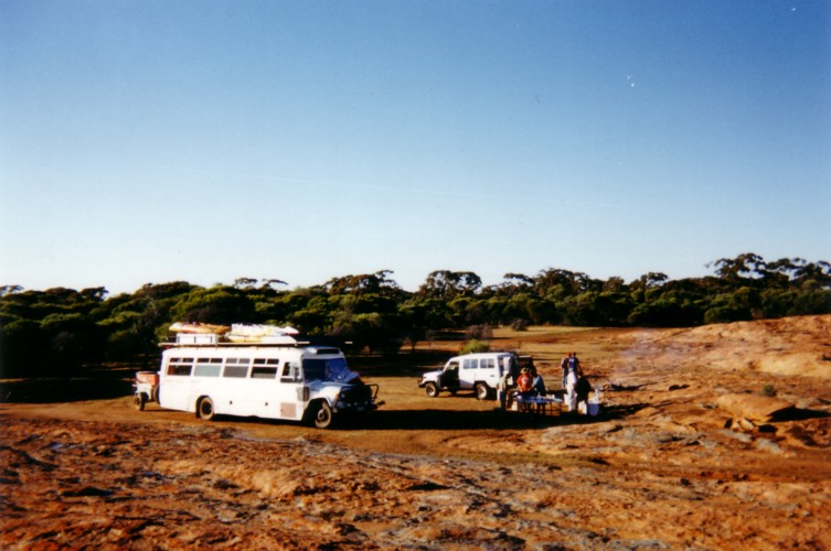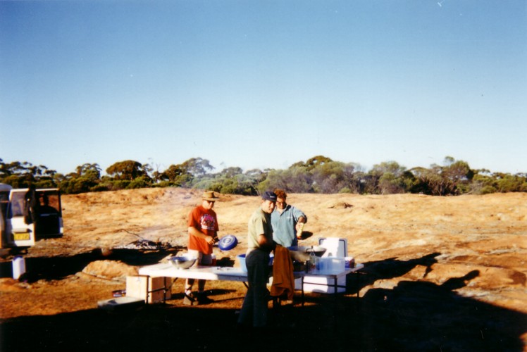 After refuelling the expedition headed south from Coolgardie towards the planned overnight stop at Gnarlbine Rock. We forgot to replenish water supply at Coolgardie. This had ramifications when attempting to wash dishes that night and the next morning.