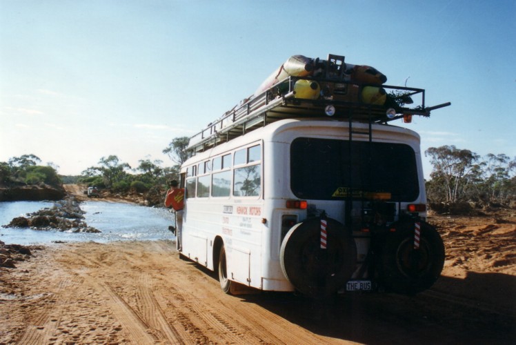 At 3.9 metres The Bus was too high to fit under the railway bridge out of Boulder. After a few turns around the tailings dumps and settling ponds we found our way out to the access road along the Trans Australia Railway.
