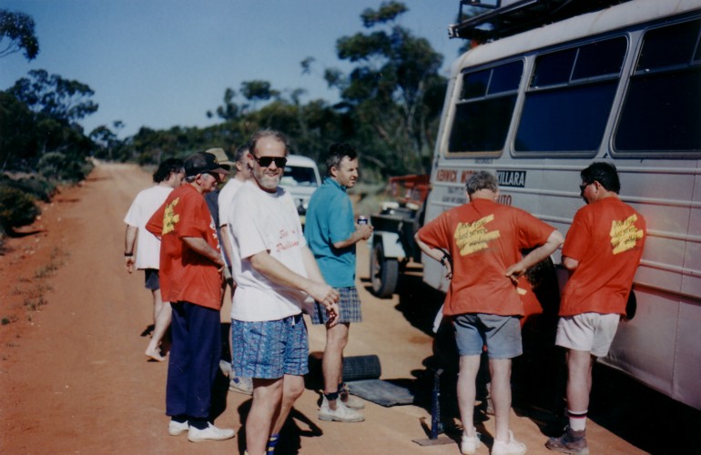 I planned a survey trip over the weekend of 22-23 July to Coolgardie via Hyden and McDermid Rock to ascertain if The Bus would be able to negotiate the track along which I planned to return from Coolgardie, believing it would be a more interesting trip than the run down the bitumen of the Great Eastern Highway. It was some years since I had been along the track and I knew that it could be impassable after even light rain – a distinct possibility around the planned date of the expedition. During the recce we marked the more hazardous sections of the track with flagging tape. The Bus would get through.