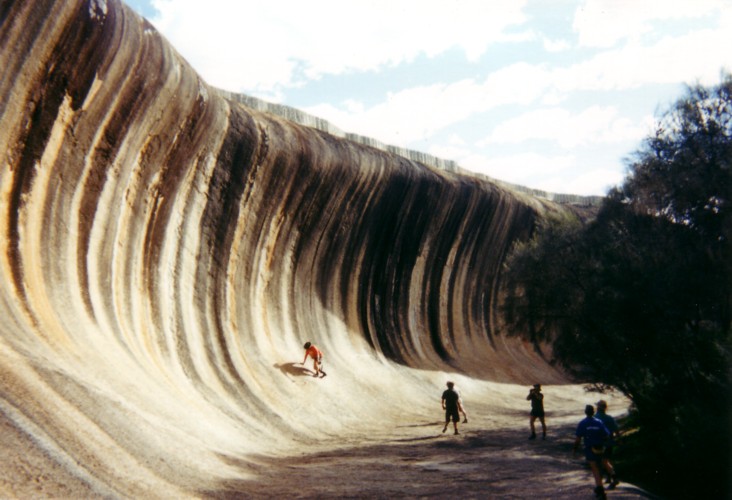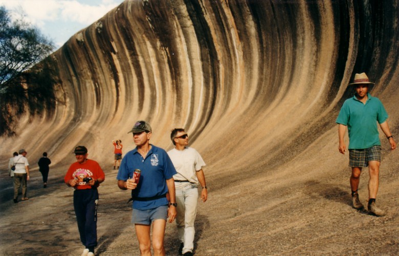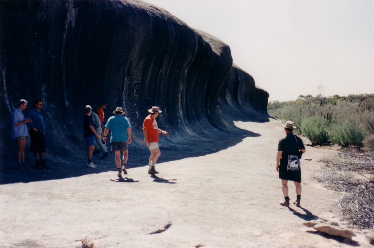 - At Wave Rock. Someone always try to climb the face. On ya, Doctor.