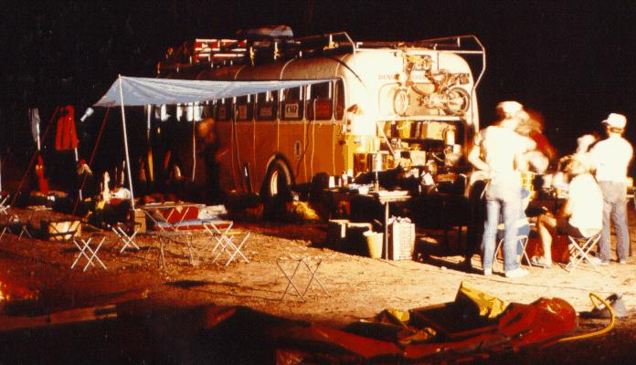 The warm conditions had dried out the dirt roads. The problem of flooded roads, bogs and mud had become one of dust and heat haze. The rear door of the bus, specially fitted prior to the Expedition, let in a lot of dust. Apart from the discomfort for the occupants, cleaning away the dust added considerably to the time taken to establish each overnight camp.