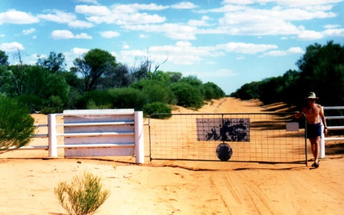 The station owner predicted the boats would have trouble getting across the Vermin Proof Fence so Scott and I in the 4WD checked it out. No trouble to intrepid power dinghy expeditioners.