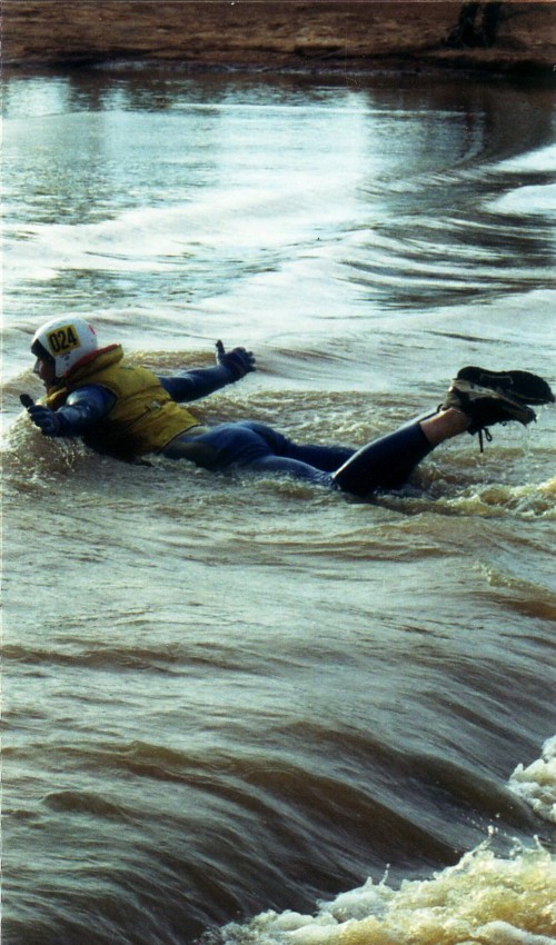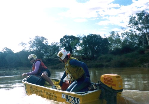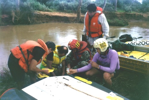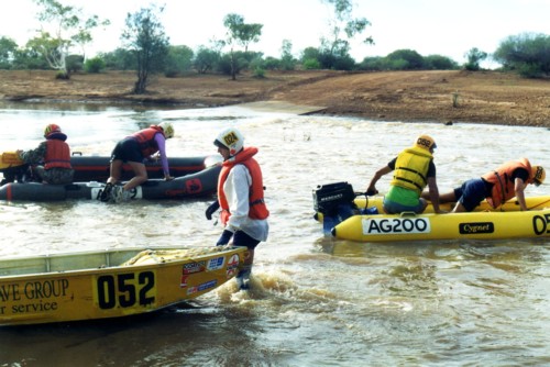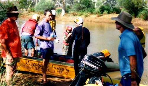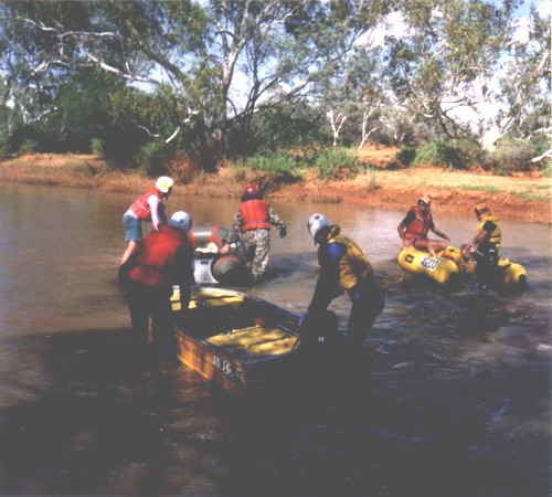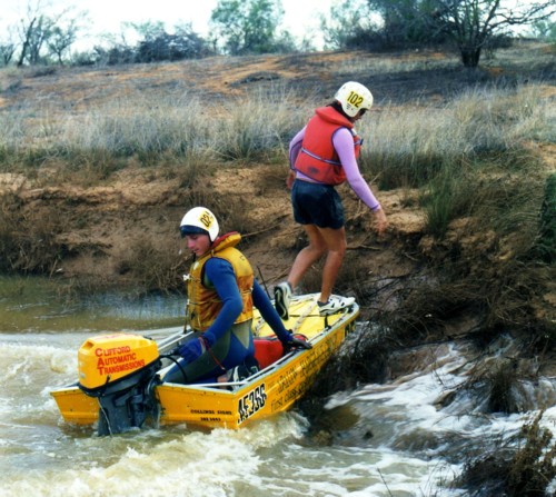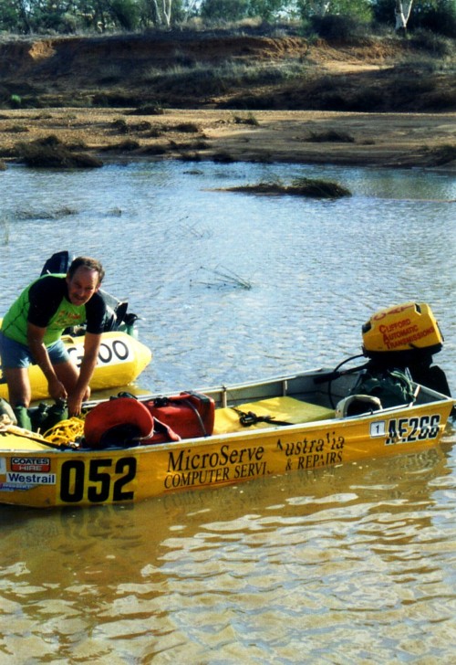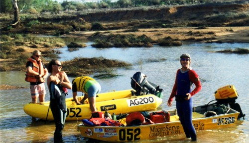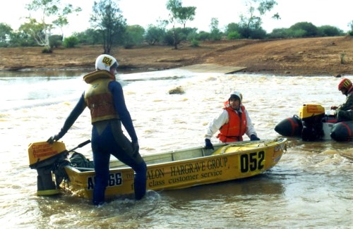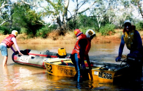 The slow progress of the boats meant that The Bus crew of Darren Austin, Adrian Bock and Kim Thorson spent a waterlogged eight hours in the Murchison River, keeping cool while waiting. With later stints waiting for the boats, Kim claimed the world record for spending the most time sitting in the Murchison River.