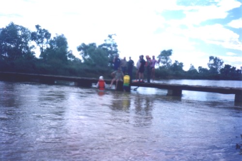 Phil and John had a cramped, uncomfortable but short ride in the back of the 4WD to the Ballinyoo Bridge where the rest of the land crew were waiting.