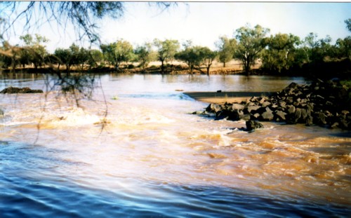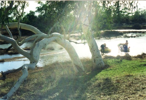 At the Manfred refuelling point Phil negotiated the 4WD through the river at the crossing point. The heat was overwhelming on the land and by mid afternoon had climbed to 45oC. Phil and I had a long, hot, out-of-the-way journey in the 4WD to get from Manfred to Murchison Crossing to meet the boats.