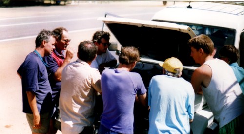 Meanwhile I was organising the preparation and repair of The Bus. Kim Thorson and Scott Overstone repaired the roof rack. John Haynes and I modified locker doors and repaired the fuel pump. John also made a hot water heater that was to be trialled during the expedition. Lists were made, gear was collected, equipment was serviced, packed and stowed, and then re-packed, more equipment was collected, checks were made, phone calls were made, arrangements were confirmed, food and other stores were purchased and at last the expedition was ready to go.