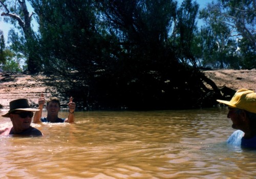 The temperature was a little cooler than the previous two days — it was only 43oC — and the land crew again found relief in the waters of the Murchison River.