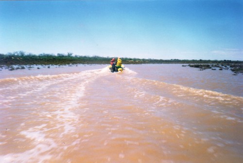 The river had spread out into a vast flood plain several kilometres across. It was a real trial and error situation to find the main current. In actual fact, there was no main current. The river intermingled with vegetation and shallow creeks were going in all directions.