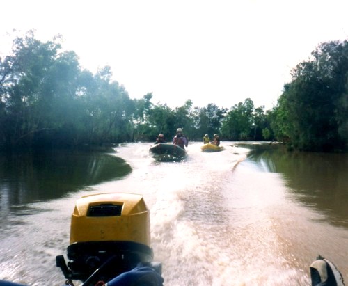 The boat crews arrived at Coolcalalaya at 2:15 p.m. This did not leave much time for the final run to the Highway. After refuelling and a complete crew change everyone was glad to get underway to escape the annoying sandflies. Adrian, Cameron, John, and Peter took over in the boats.