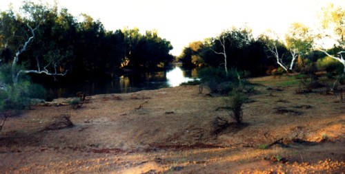 Some were only as wide as the boat and were generally found on the right side of the river’s course. They invariably ended with a stark white river gum against the cliff wall partially blocking the way. The channel would then open out into the river proper. After approximately 300-500 metres the river would narrow into another similar channel with the ubiquitous white gum at the end. The river proper was flanked by six to ten metre cliffs. This type of country continued for about fifteen kilometres.