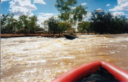 It was in this vast expanse of water that Kevin and Stephen became separated from the two joined boats. In each of the previous trips (1994 and 1997) that entered into the Floodout, the same drama occurred. It is remote and scary country.