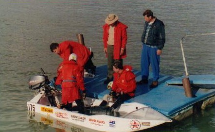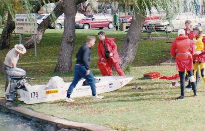 The noise was as incredible as the speeds – up to 150 kph. My fear was that Peter and Geoff would not be able to get the boat past the racing. We approached race officials who indicated that they believed the boat had passed through along a small channel on the far side of the river. Though this information was not conclusive time constraints meant that I had to accept it as fact and push on to Wellington. I established radio contact with the crew in The Bus. They had found a suitable spot behind the hotel to refuel.