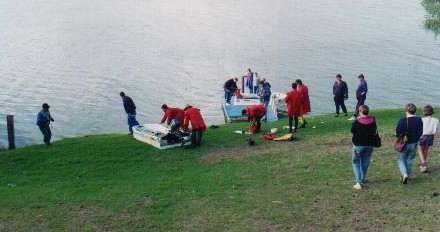 I was concerned that the boat crews would not see the planned refuelling point. Houseboats, willow trees lining the banks, two car ferries continuously crossing and re-crossing the river, and many other activities all potentially obscured the spot.