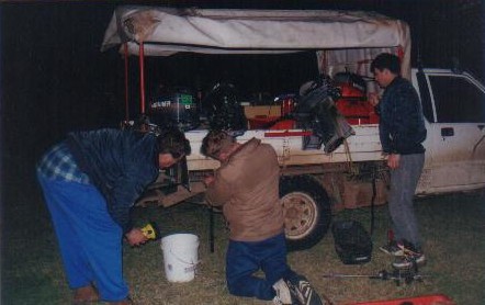 Meanwhile, Tony and I headed back into the caravan park along the now quite familiar track. Adrian, Geoff, Greg, Michael, Peter and Stewart had arrived by boat at 1615 and were waiting on the beach. Two of the boats were transported to the campsite in the caravan park, about 200 metres away.  Both needed maintenance.
