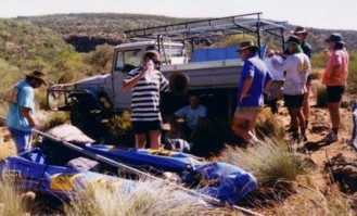 David Whitney and Tony Overstone set off in the 4WD ten minutes before the boat crews. They were to follow tracks close to the river, heading to the disused Geraldine Mine area. They planned to follow these river tracks as far as possible, keeping as close a check as possible on the boats.