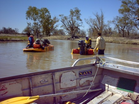 - Kevin and John on the Murray River on the run to Renmark.