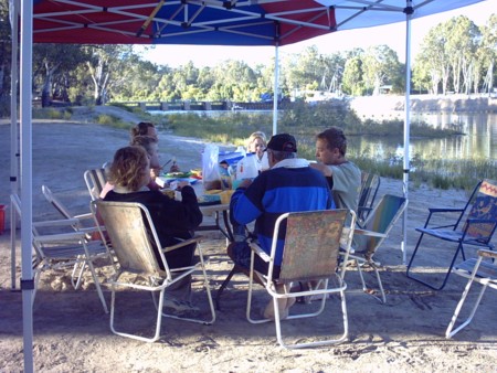We ate lunch like it was our last meal. We never said much. Everyone was pretty shagged. The weather was warming up and we were thinking about the trip from here to Renmark.