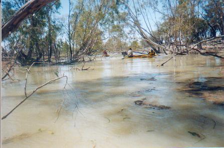 We continued on through the Punkah, squeezed under the footbridge and then through the shallow water. The Punkah flows into the Chowilla.
