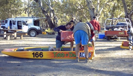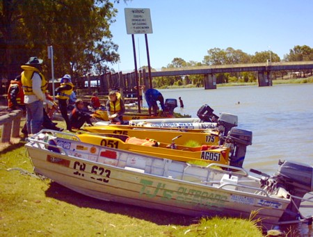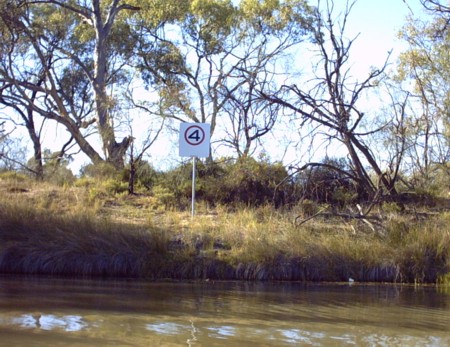 The Support Crew arrived and we quickly refuelled the boats and set off up the Darling. Little did we know that we had missed a 4 knot zone sign. It was overgrown by grass.