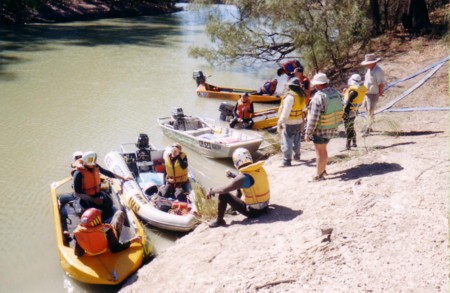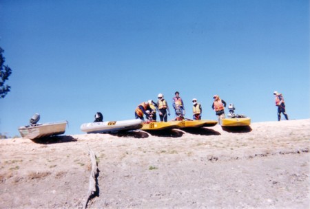 Meanwhile we had landed and were waiting for the Support Crew to arrive at the chosen spot. Todd decided to kill some time by going for a spin upstream. He returned a short time later and told us that the Support Crew were around the corner. We jumped in the boats and raced off to lunch.