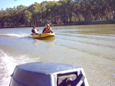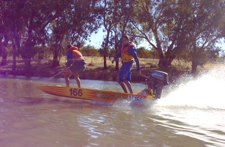 - Ian and Todd fooling around on the Darling River.