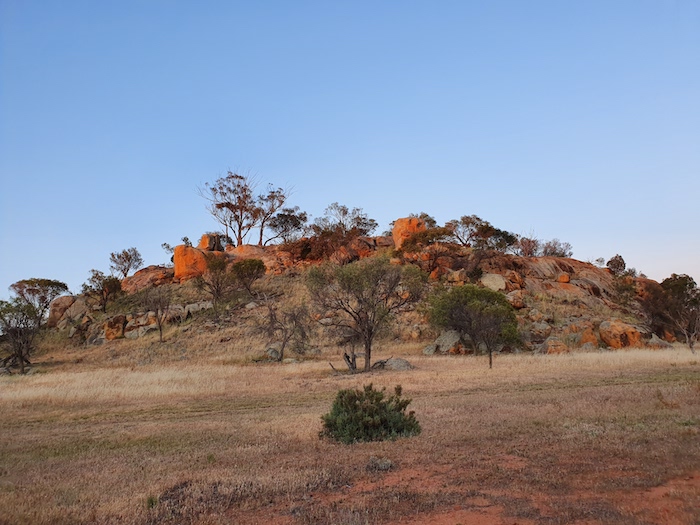 The 320 metre high hill is in the middle of a 180 hectare triangle of bushland among long-established farmland. Just far enough off the highway not to be used by ‘grey nomads’, it is pretty much exclusively for the informed.