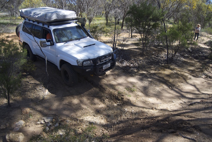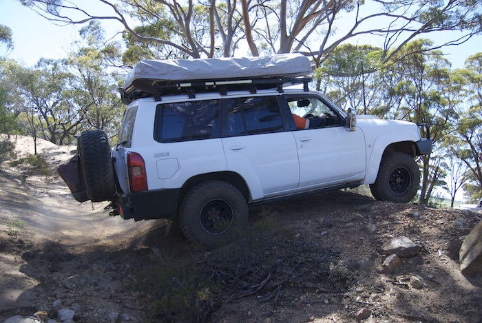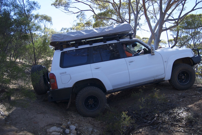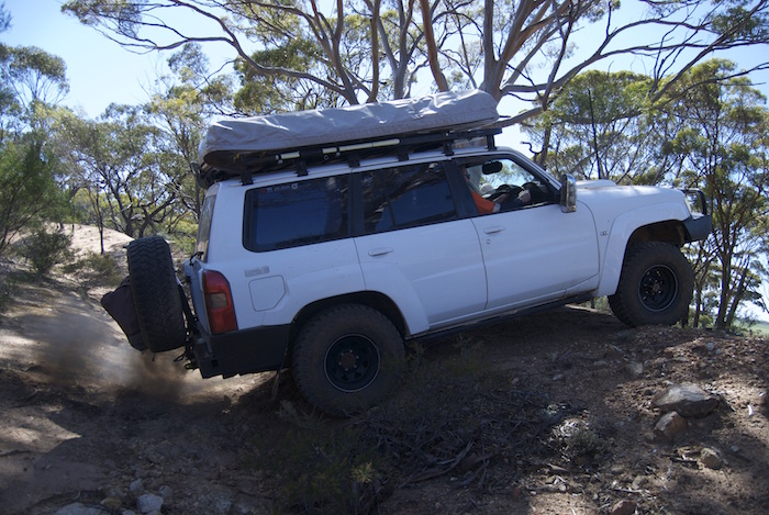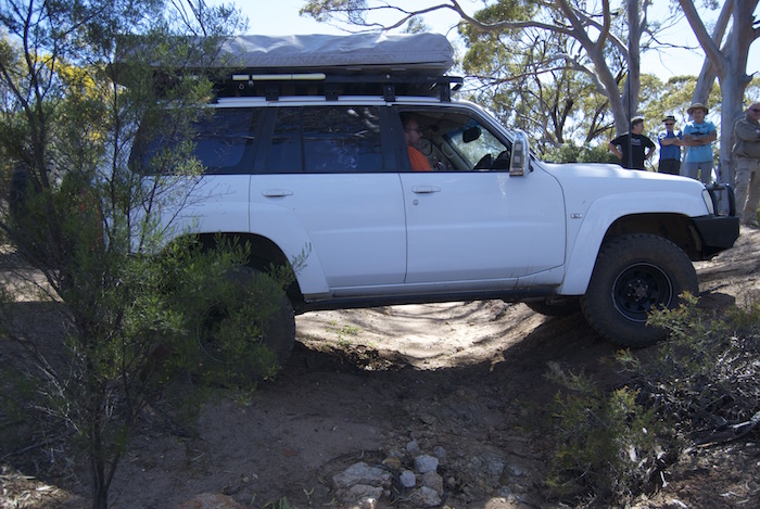 Jon takes his Patrol across a gutter.