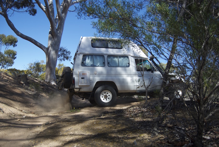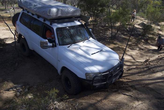Jon takes his Patrol across a gutter.