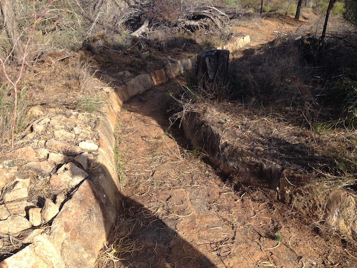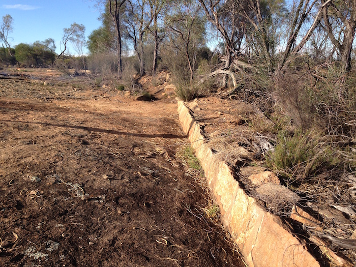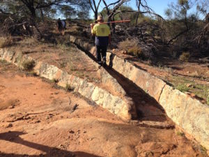Scott walking along cleared section of harvest wall