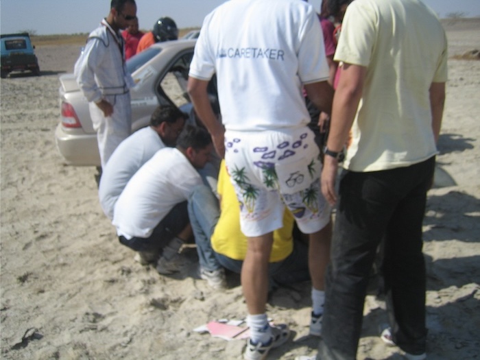 The paperwork to enter Desert Storm 2008 is a bit of a challenge. Indians are consummate bureaucrats. No trivial piece of information seems too irrelevant. I need a blood type test. I was despatched to see Dr Davy with “the driver”. We skittled a motorcyclist on the return journey, nothing out of the ordinary. After seeing Raj, the Clerk of Course and Phillip, the Event Secretary most items seem in order.