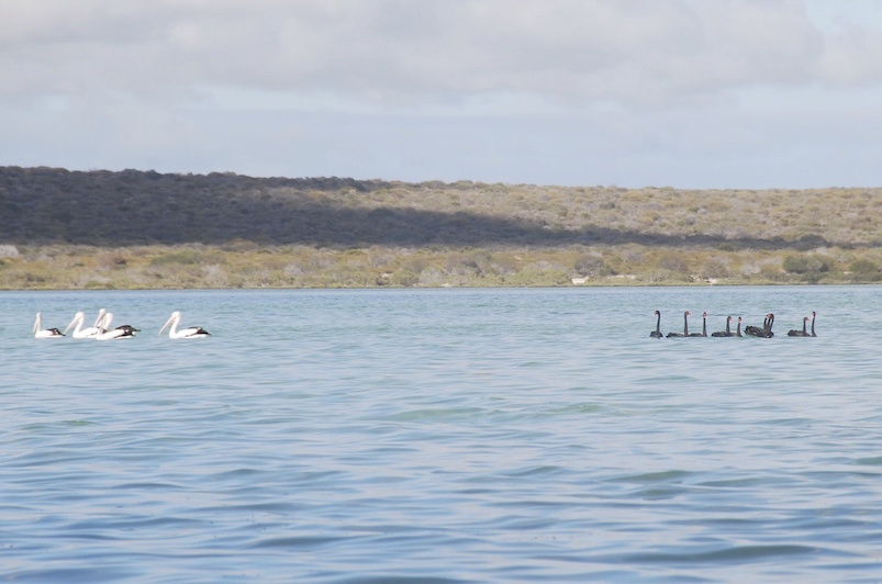 - Pelicans and swans together.