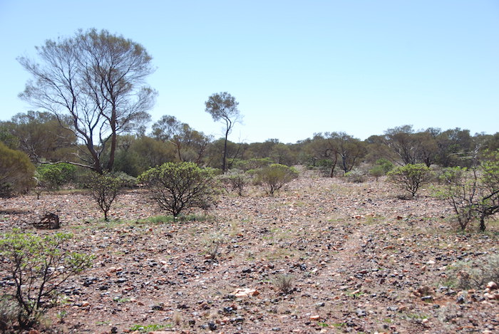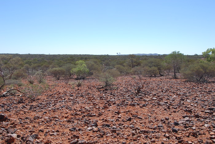 Eventually the ground began to rise and we knew we had selected the correct course. We broke through the scrub and came out on a barren, gravelly ironstone rise.
