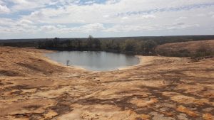 The drive back to the Great Eastern Highway was on a track that no-one in the group had been on before (Dally Track). It showed as an indistinct line on Google Earth and we were not sure that it would communicate with Yerdanie. As it turned out it had clearly not been driven for many years but it was passable and was a great drive requiring plenty of concentration. One of the reasons we do these trips.[Update: As of 2024 Dally Track has been upgraded – possibly to provide easier movement for the local dogger – and is now no-where as interesting or challenging. Two wheel drive track.]