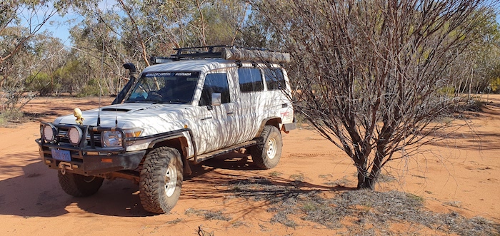 - Mushy’s Troopy parked in the shade at Yerdanie.