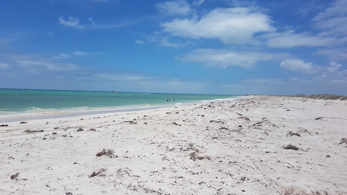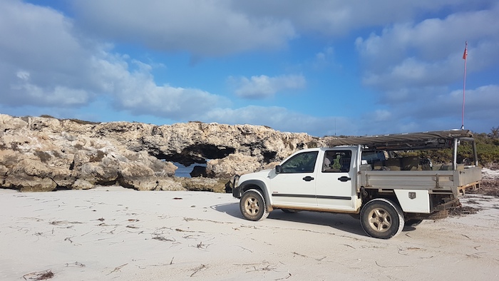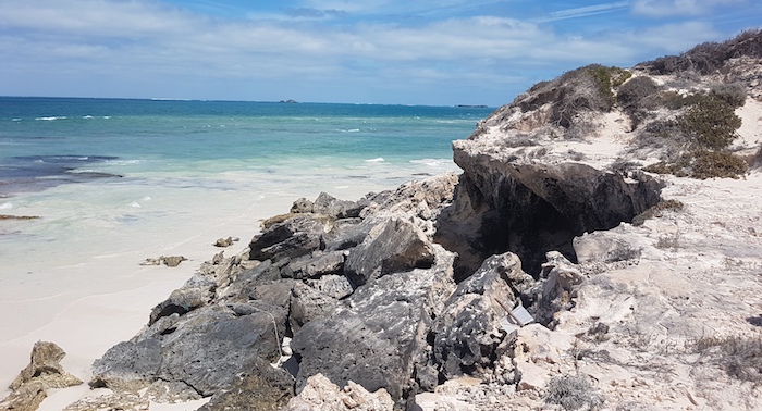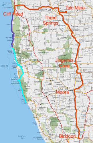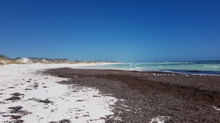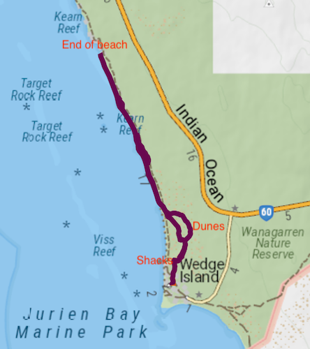 Four kilometres north of Milligan our way north was blocked by rocks. We were able to go off the beach, around the obstacle and resume our push along the edge of the ocean for a further five kilometres to Leeman.