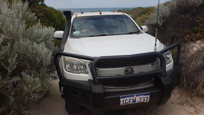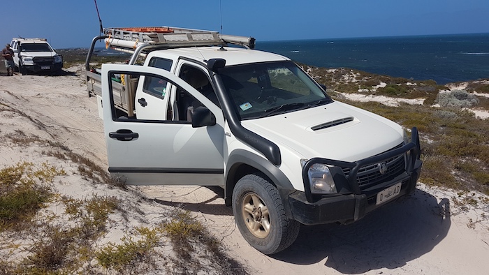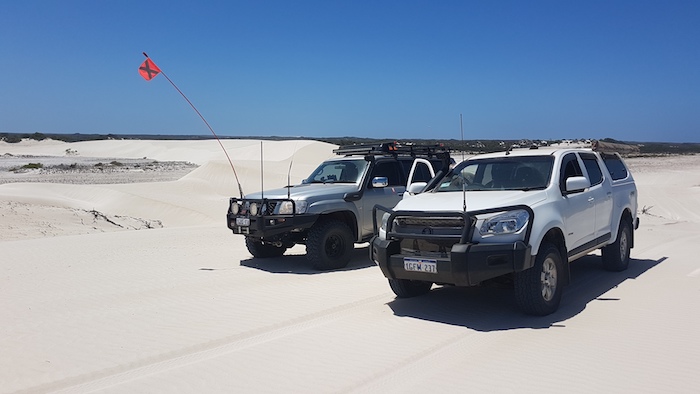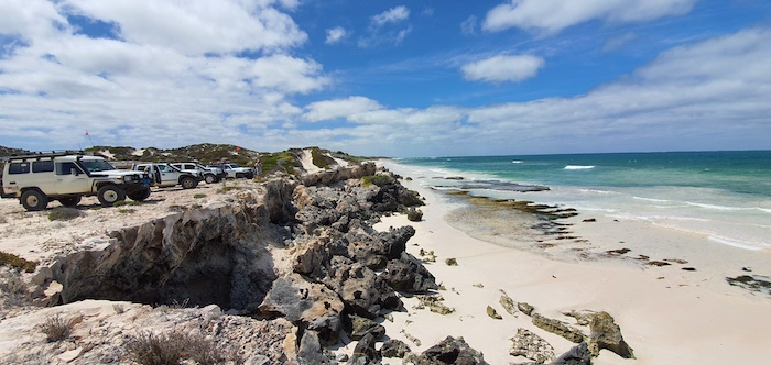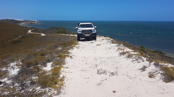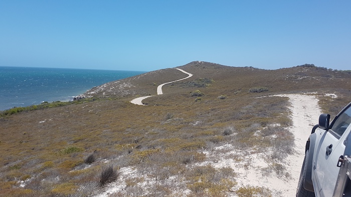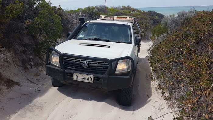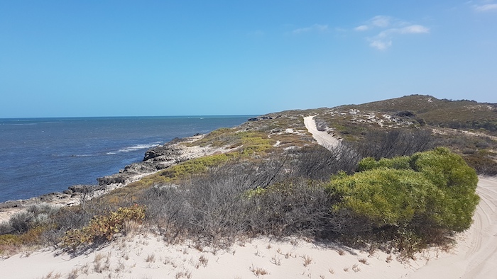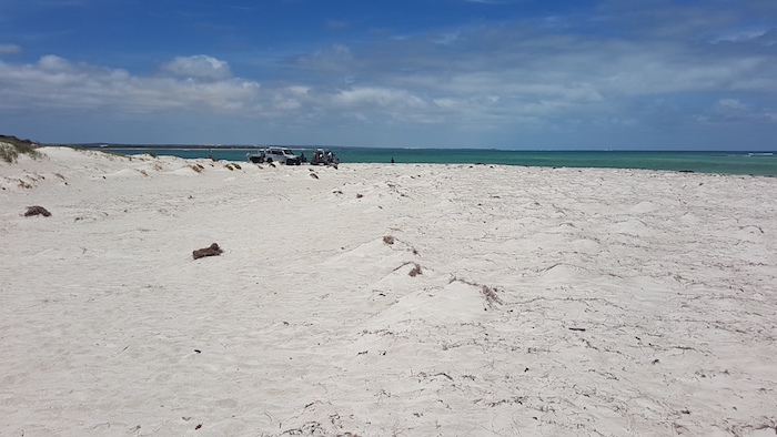 Our way was blocked on the beach 2.5 kilometres north of Coolimba so we returned to the shacks and access track and drove out to Indian Ocean Drive. Ten kilometres north we turned into Gum Tree Bay and pushed north along the coast. The track led us into an extensive dune system through which we were unable to find a way north.