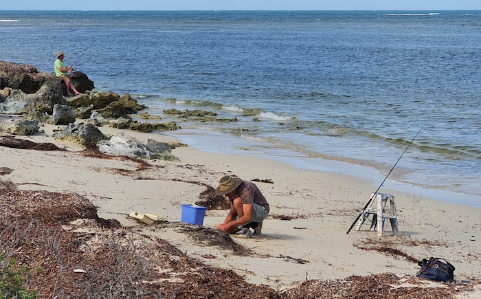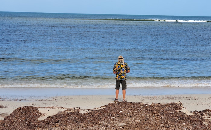 Finding a weed-free beach suitable for fishing was difficult. We gave it a try just short of Coolimba.