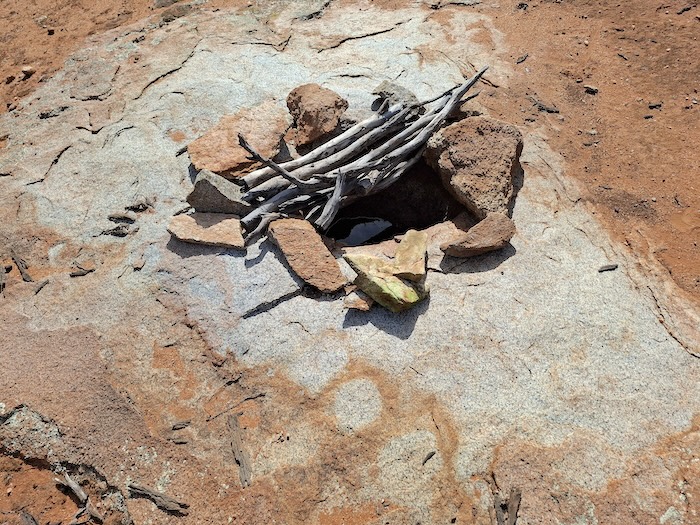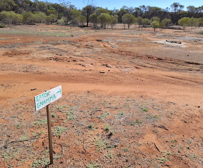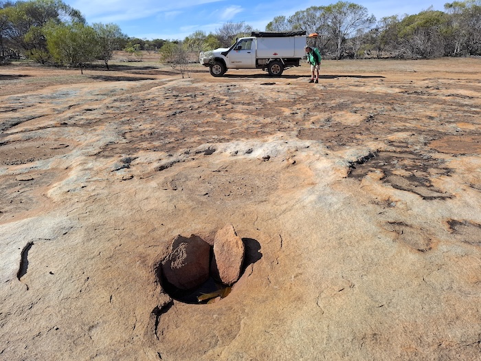 Before the turnoff to Prince of Wales mine we stopped at a ‘classic’ gnamma named in 2023 by renowned current day bushman Alan McCall as Epton Gnamma (thanks Alan).