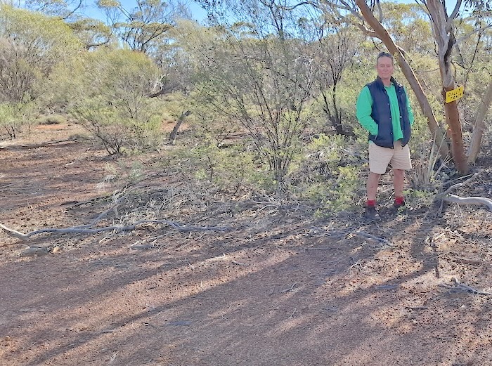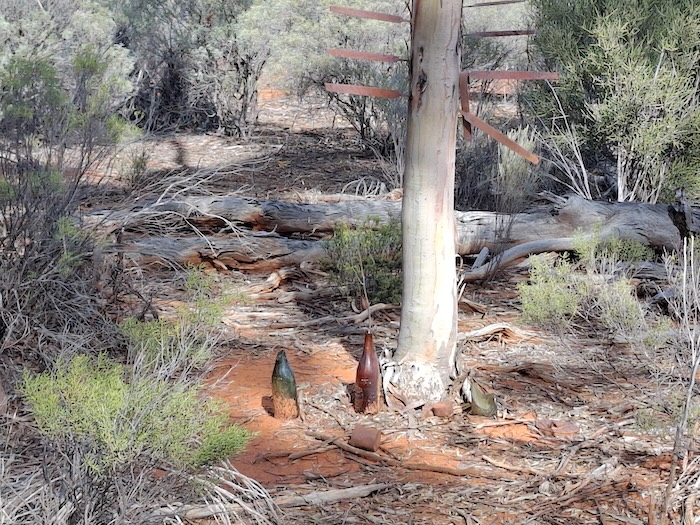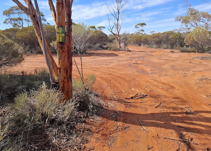 For some time we had seen vehicle tracks. After examining them we determined that they were reasonably fresh, certainly no more than a few days old. Perhaps someone’s weekend outing. The day after our Day Trip finished we caught up with Phil Bianchi and Alan McCall on our Bullabulling Wallaroo Goongarie Bush Trip to find out they had accessed Hunt Track via the track into the abandoned Prince of Wales mine and the tracks we had seen were those of Phil’s Toyota wagon.