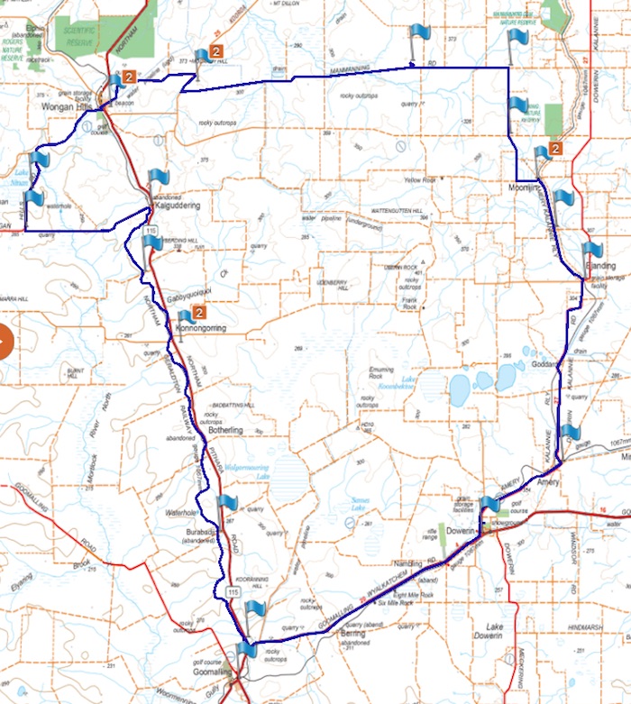 One of the Organisers handed me a A4 sheet of location names and asked if I could lead a Tour that would encompass the places on the list. No map. It was beyond my capabilities – but I had earlier prepared a trip to Dingo Rock.