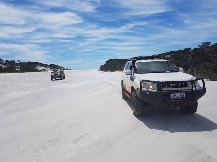 - Dan’s Prado and Adi’s Jimny at Saint Mary River mouth.