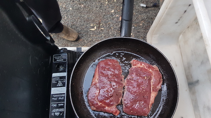 - Dan cooked the steaks and I cooked the vegies.