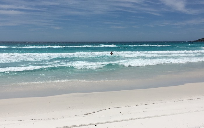 The track eventually joins with the coast – rugged, beautiful and typical of Australia’s southern edge. Continually pounded by the relentless Southern Ocean, never calm and always some white water somewhere.