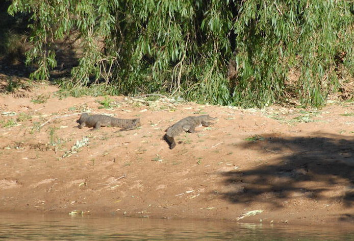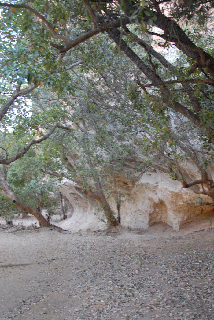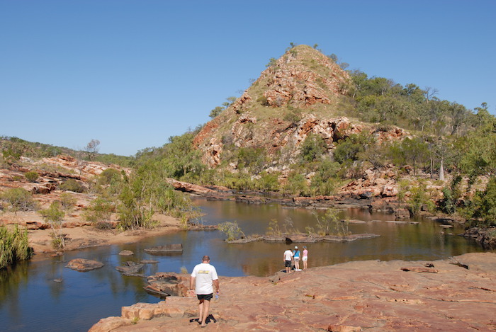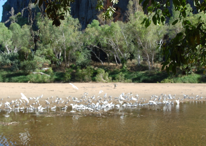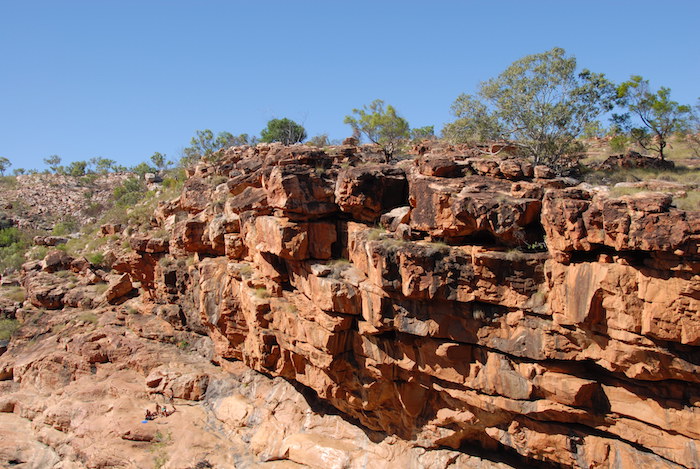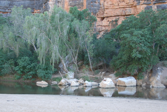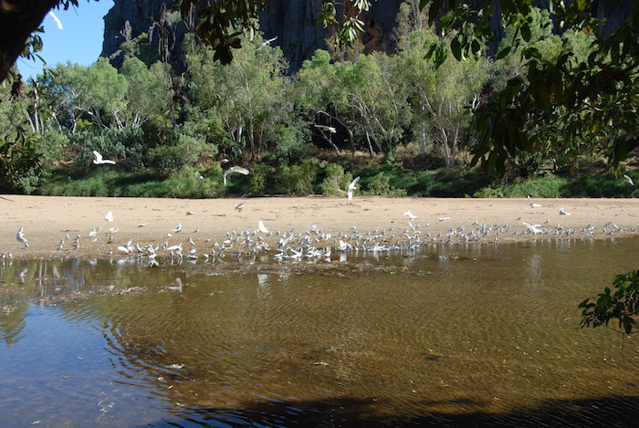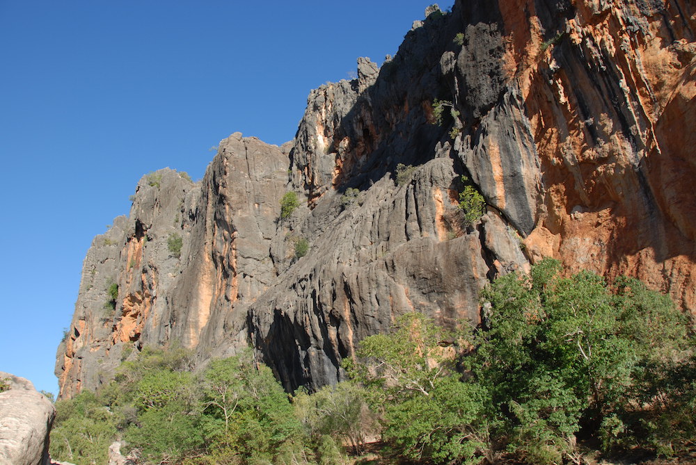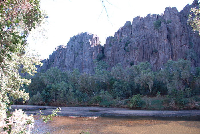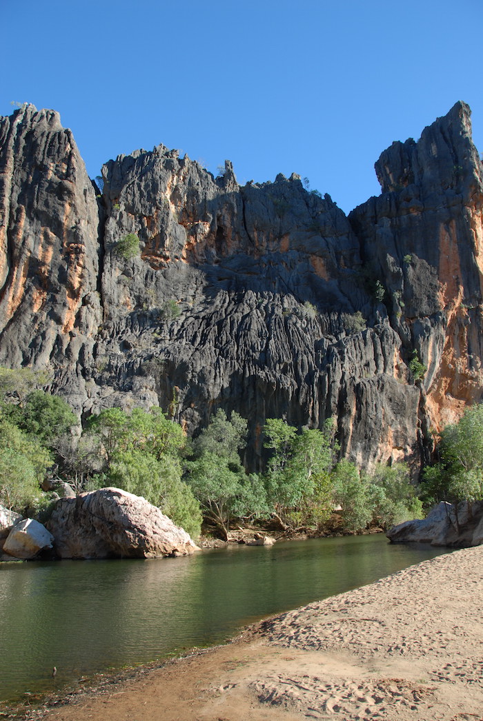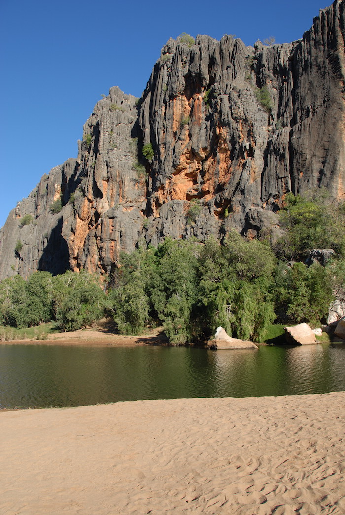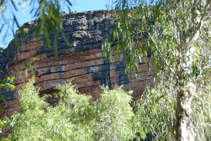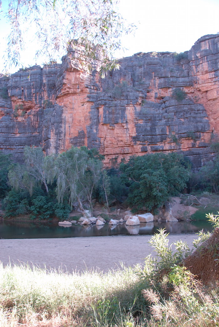 128 kilometres to the east the iconic, easily accessible Windjana Gorge has been carved through the Napier Range (an ancient Devonian reef) by the Lennard River.