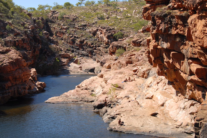 Bell Gorge, the most famous of the gorges along the Gibb, is about 95 kilometres east of Windjana (turnoff to turnoff).